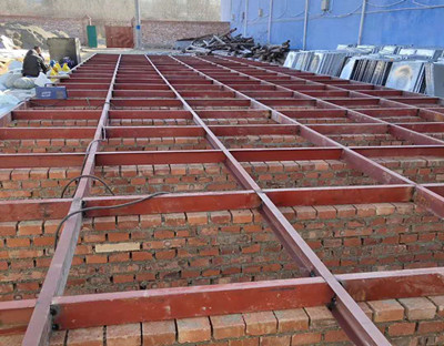 2.接下來是水箱的安裝, 在水箱板安裝之前, 同樣按照發貨清單依次清點, 底板, 側板及蓋板的數量及打孔是否正確。 首先組裝底板, 把板依次擺好, 板與板中間夾好 橡膠條,穿上螺栓,用電動扳手吧螺絲緊固好,把底板連接起來,放在焊好的槽鋼底座上。